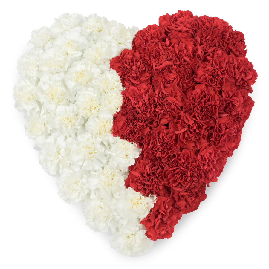 Convey your deepest sympathies with our Beautiful Carnations Heart arrangement, thoughtfully designed by Handy Flowers. This charming bouquet features a delightful combination of white and red carnations, creating a serene and elegant display perfect for any heartfelt occasion.